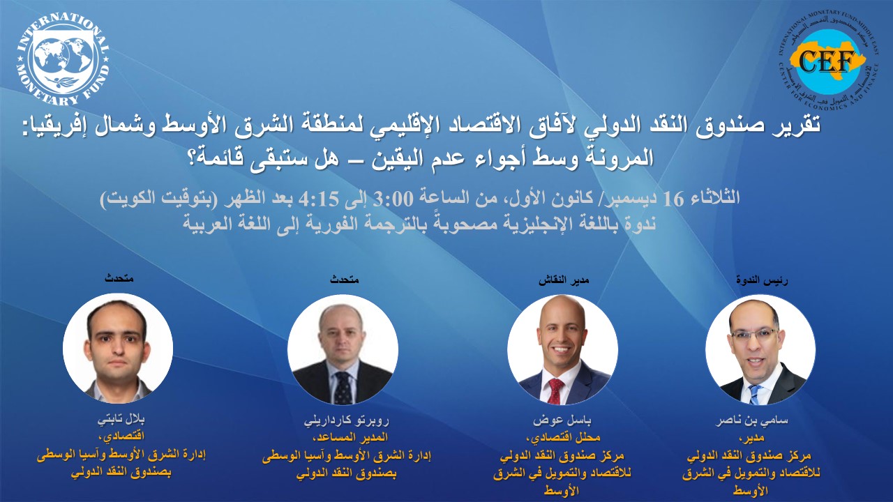 ندوة عبر الانترنت لمناقشة تقرير صندوق النقد الدولي لآفاق الاقتصاد الإقليمي لمنطقة الشرق الأوسط وشمال إفريقيا، بعنوان "المرونة وسط أجواء عدم اليقين – هل ستبقى قائمة؟"